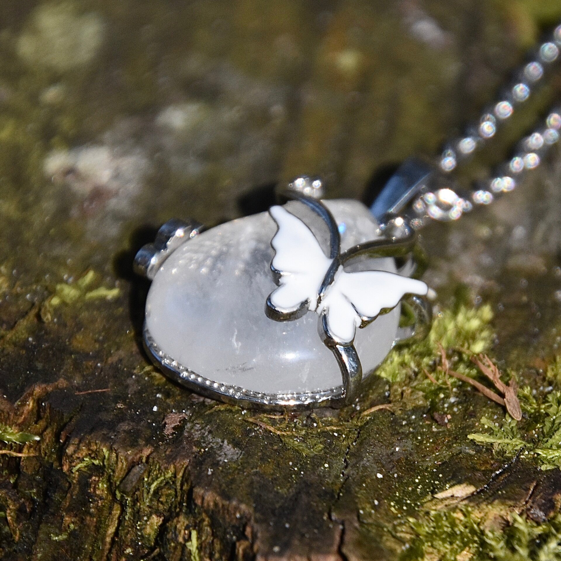 Bergkristal ketting met vlinder