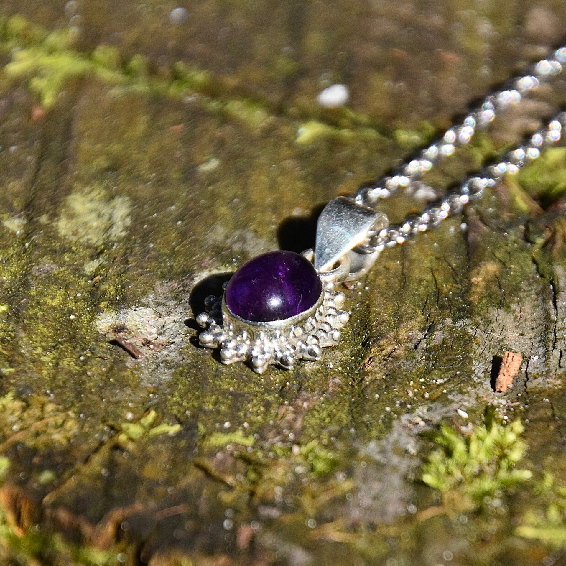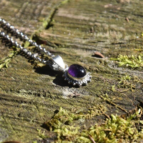 Handgemaakte ketting met 925 zilveren Amethist hanger