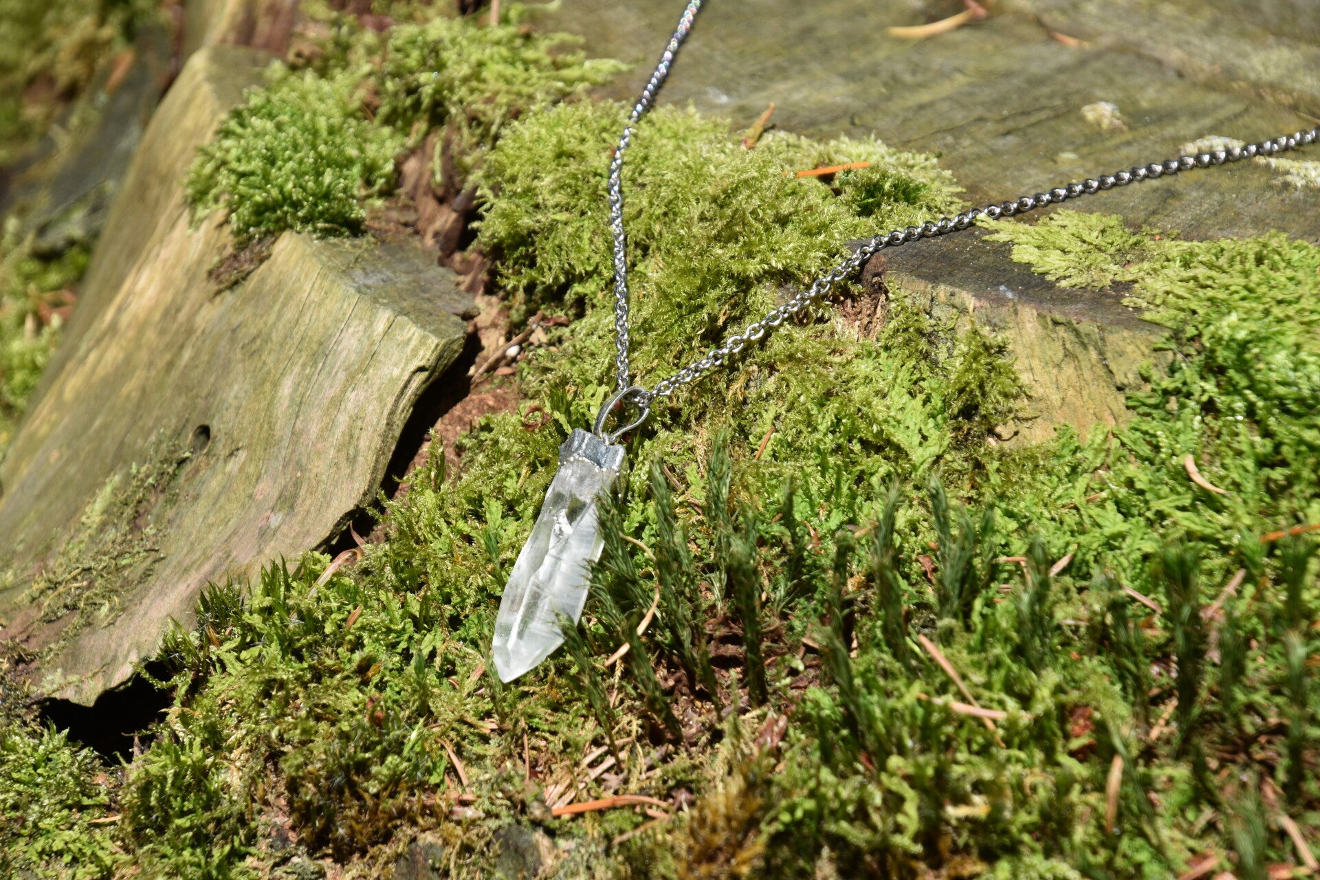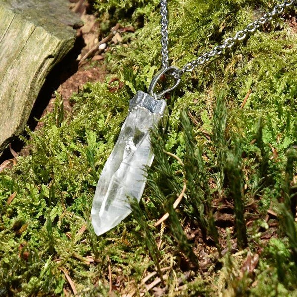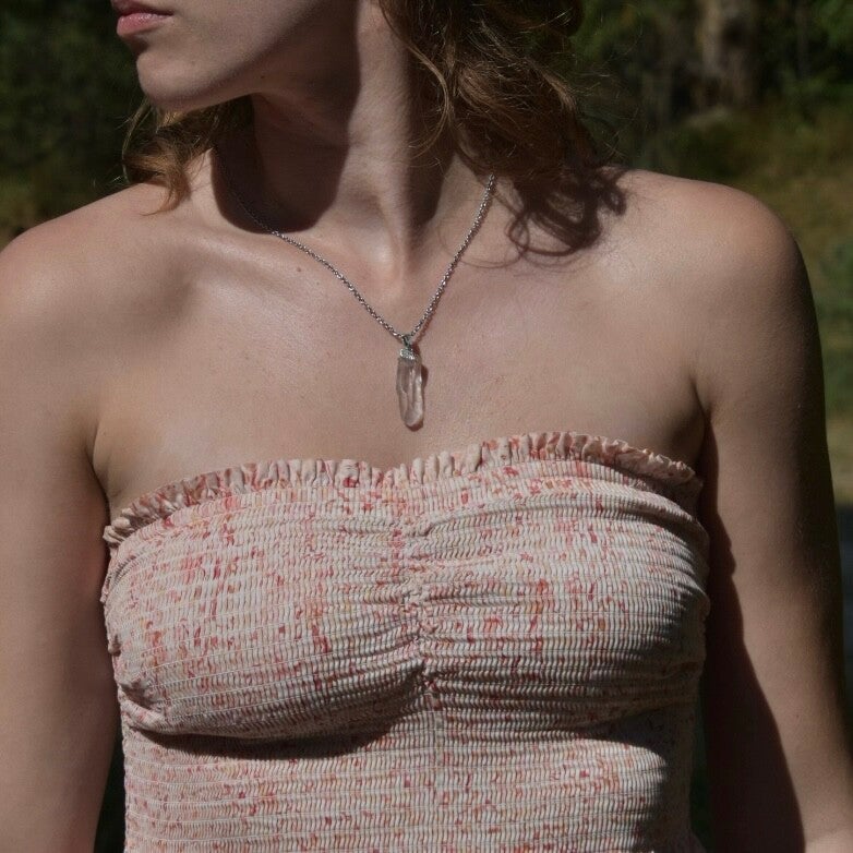 Handgemaakte ketting van roestvrij staal met ruwe Bergkristal hanger. Elke ketting wordt speciaal voor jou op maat gemaakt. Bovendien gaat 5% van de winst naar het Huidfonds.