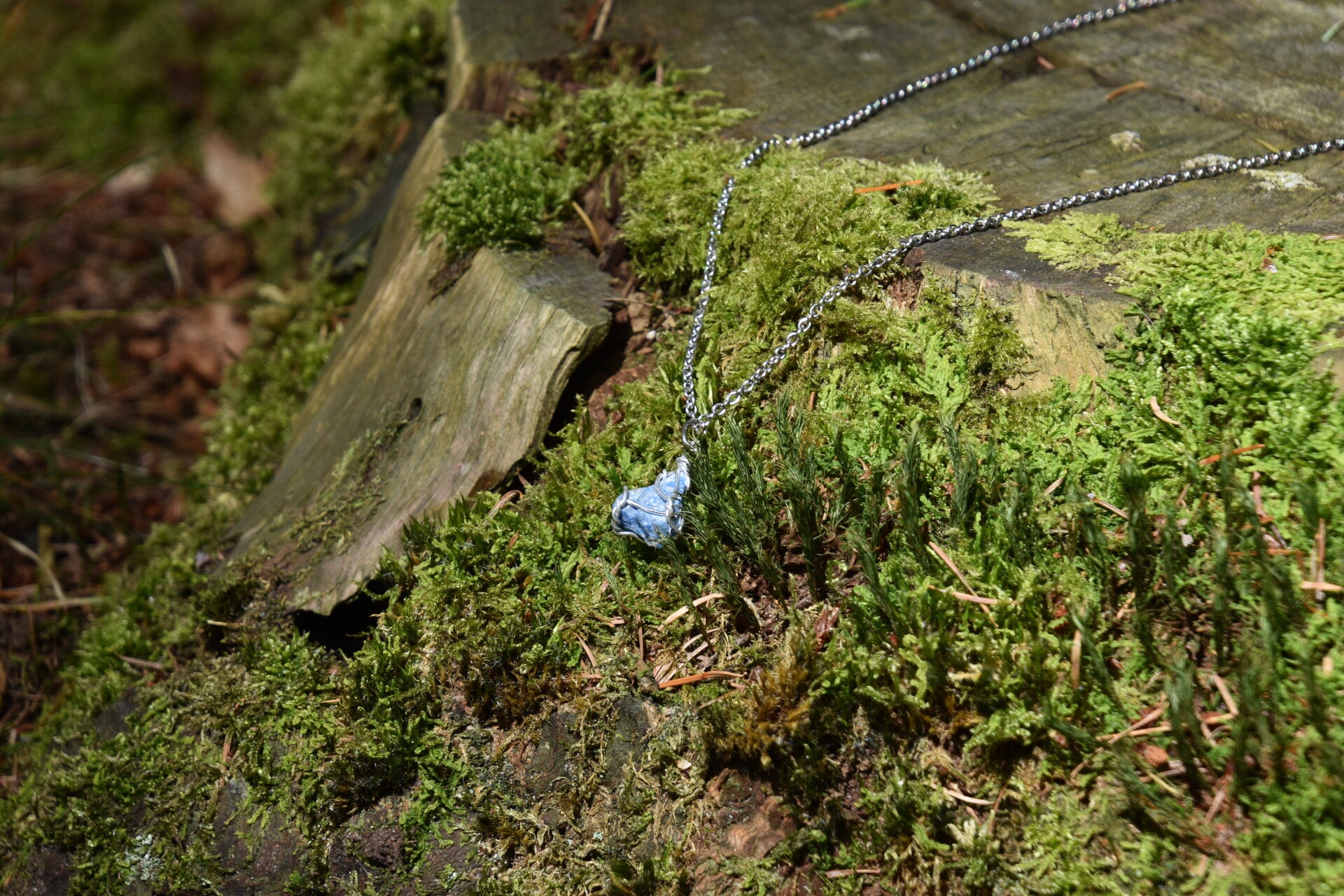 Een prachtige handgemaakte ketting van roestvrij staal met ruwe Lapis Lazuli hanger. Wordt op maat gemaakt en 5% van de winst gaat naar het Huidfonds.